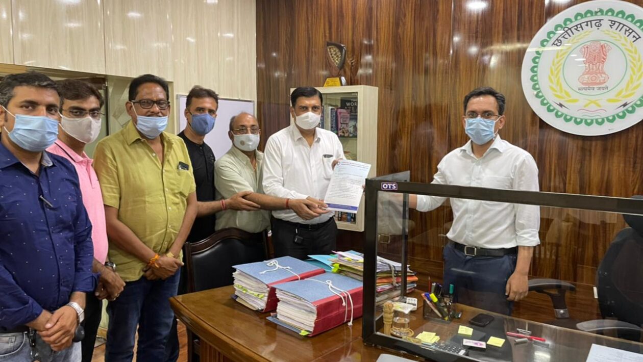 रायपुर,17 अगस्त 2021।छत्तीसगढ़ चेम्बर ऑफ कॉमर्स एंड इंडस्ट्रीज के प्रदेश अध्यक्ष अमर पारवानी, महामंत्री अजय भसीन, कोषाध्यक्ष उत्तम गोलछा, कार्यकारी अध्यक्ष राजेन्द्र जग्गी ,विक्रम सिंहदेव, राम मंधान, मनमोहन अग्रवाल ने बताया कि चेम्बर प्रदेश अध्यक्ष श्री अमर पारवानी के नेतृत्व में चेम्बर का प्रतिनिधि मंडल जिलाधीश महोदय से मुलाकात कर मुख्यमंत्री जी के नाम का ज्ञापन सौंपा।