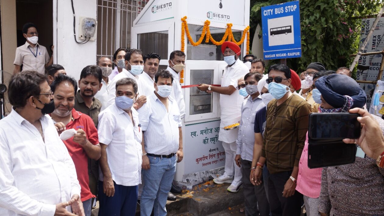 रायपुर-देवेंद्र नगर चौराहे पर आम राहगीरों कि प्यास बुझाने शीतल पेय जल वॉटर फ्रीजर स्व.मनोज अग्रवाल जी की स्मृति मशीन का उद्घाटन रायपुर उत्तर विधायक श्री कुलदीप जुनेजा ने फीता काटकर उद्घाटन किया ।