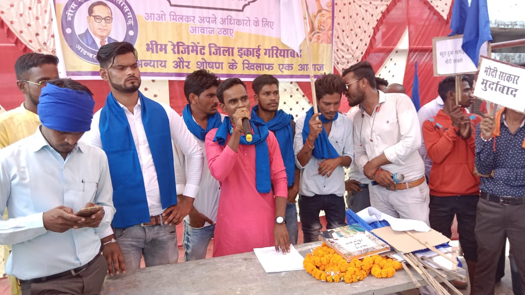 भीम रेजिमेंट ने मोदी सरकार का पुतला दहन कर ज्ञापन ज्ञापन