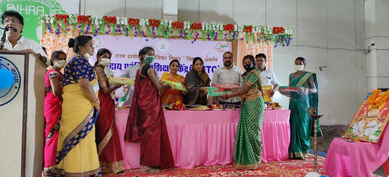 दीनदयाल अंत्योदय योजना – राष्ट्रीय ग्रामीण आजीविका मिशन ” बिहान ” अंतर्गत रायपुर जिले के विकासखंड धरसीवां में कल्पतरु मल्टी यूटिलिटी सेंटर सेरीखेड़ी में स्थापित किया गया है ,जिसका भव्य शुभारंभ आजादी के अमृत महोत्सव के अवसर पर कार्यक्रम की मुख्य अतिथि माननीय विधायक धरिसवा श्रीमति अनिता योगेंद्र शर्मा एवं की कार्यक्रम की अध्यक्ष डोमेश्वरी वर्मा जिला पंचायत अध्यक्ष के कर कमलों द्वारा किया गया । कार्यक्रम के दौरान सितंबर अक्टूबर माह का ट्रेनिंग कैलेंडर का विमोचन अतिथियों द्वारा किया गया एवं प्रशिक्षणार्थियों को ट्रेनिंग किट का वितरण कर सक्रिय महिलाओ का प्रशिक्षण का शुभारंभ किया गया । कार्यक्रम को संबोधित करते हुए विधायक शर्मा ने माननीय मुख्यमंत्री जी का धन्यवाद अपने क्षेत्र वासियों की तरफ से ज्ञापित करते हुए कहा कि धन्यवाद है जिन्होंने पूरे प्रदेश में पहले मेरे विधानसभा अंतर्गत ग्राम पंचायत शैरी खेड़ी को चुना है इससे ना केवल महिलाएं प्रशिक्षित होगी बल्कि महिलाओं को एक रोजगार प्राप्त होगा और जो माननीय मुख्यमंत्री जी का उद्देश है कि महिलाएं सशक्त हो इससे पूर्ण रूप से महिलाएं सशक्त होंगी जिससे कि ना कि केवल घर में बल्कि उनका समाज में भी वर्चस्व बढ़ेगा इस कार्यक्रम में मॉडल क्लस्टर संगठन के EC सदस्य , सभी कम्युनिटी कैडर , ग्राम संगठन के पदाधिकारी, स्थानीय जनप्रतिनिधि, बिहान के राज्य कार्यालय से श्री निर्मल चंद्र प्रसाद एवं डी एम एम के अधिकारी एवं कर्मचारी आदि उपस्थित थे । कार्यक्रम का सफलतापूर्वक आयोजन जिला पंचायत के मुख्य कार्यपालन अधिकारी श्री मयंक चतुर्वेदी के कुशल मार्गदर्शन में संपन्न हुआ ।