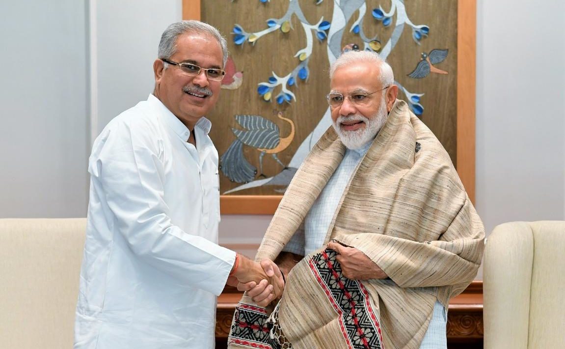 रायपुर –छत्तीसगढ़ के मुख्यमंत्री भूपेश बघेल ने आज नई दिल्ली में प्रधानमंत्री श्री नरेन्द्र मोदी से मुलाकात की और उनसे छत्तीसगढ़ के 70 लाख आदिवासियों और 58 लाख गरीब परिवारों से जुड़े लंबित विषयों के शीघ्र निराकरण का आग्रह किया ।