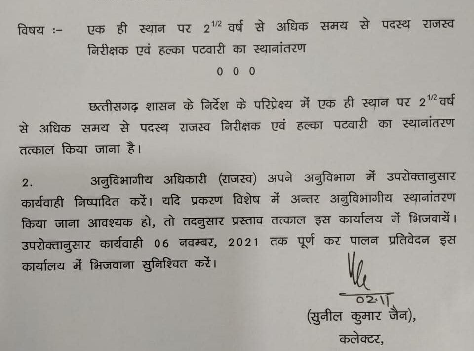 ढाई साल से ज़्यादा जमे हुए पटवारियों का होगा ट्रांसफर ……अन्य जिलों में शुरू हुआ अभियान….बिलासपुर में भी होने की संभावना…..पटवारियों के मची खलबली