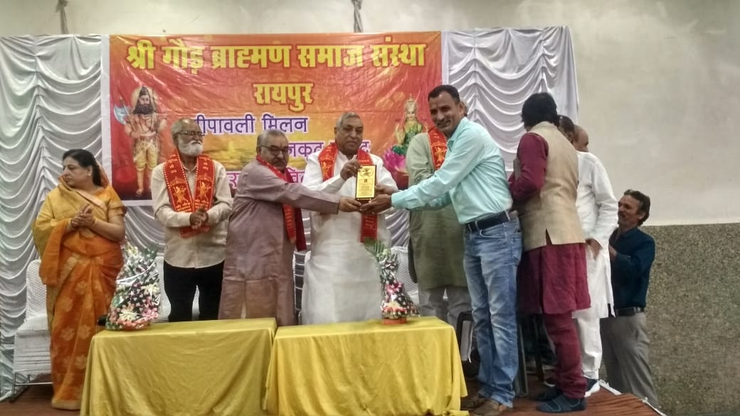 रायपुर/08 नवम्बर 2021 कोरोना जैसी महामारी के चलते बहुत से परिवारों ने अपनो को खोया है।इस महामारी के चलते पिछले दो साल से सामाजिक,आर्थिक गतिविधि थम सी गई थी।आज पूरे दो साल बाद कोरोना गाइड लाइन का पालन करते हुए श्री गौड़ ब्राह्मण समाज संस्था रायपुर द्वारा दीपावली मिलन,अन्नकूट प्रसाद,कोरोना योद्धाओं का सम्मान के साथ ऑनलाइन प्रतियोगिताओं में विजय प्रतिभागियों को श्याम खाटू मंदिर में पुरस्कार वितरण किया गया।कार्यक्रम में वरिष्ठ विधायक एवं संरक्षक सत्यनारायण शर्मा ने कहा कि श्री गौड़ ब्राह्मण समाज संस्था रायपुर ने सामाजिक बंधुओ के मदद के साथ सभी सामाजिक जनो की मदद करने को तत्पर रहती है।इसका उदाहरण हमे कोरोना जैसी महामारी में देखने को मिला।समाज के युवा वर्गों के साथ महिलाओं एवं वरिष्ठजनों ने अपने जान की परवाह किये बिना समाज के प्रत्येक व्यक्तियों की मदद किये ये दो साल बहुत कठिनाइयों भरा रहा।समाज द्वारा जरूरत मंदो को भोजन,ऑक्सिजन सिलेंडर,मास्क वितरण एवं हमारे समाज के साथियों ने ब्लड तक देकर लोगो की मदद किये ऐसी महामारी आएगी जिसकी किसीने कल्पना भी नही की होगी।आज पूरे दो साल बाद इस तरह के सामाजिक कार्यक्रम होरहे है। में भगवान परशुराम से प्रार्थना करता हु ऐसी महामारी अब दोबारा न आये।श्री गौड़ ब्राह्मण समाज संस्था के अध्यक्ष प्रह्लाद मिश्र ने बताया कि इस कार्यक्रम में अपनों से मिलकर एक दूजे को दीपावली,भाई दूज,अन्नकूट की बधाई दिए।सभी ने अपने पल याद किये जिससे कइयों की आंखे भर आईं।प्रहलाद मिश्र ने कहा कि आज के इस कार्यक्रम का मुख्य उद्देश्य अपनो को अपनो से मिलाना था।दो नव गठित टीम श्री गौड़ ब्राह्मण युवा मंडल एवं श्री गौड़ ब्राह्मण महिला मंडल का गठन कर उसे धरातल पर लाकर समाज के प्रत्येक व्यक्ति की मदद की जाएगी।कोरोना काल मे हमारे साथियों ने जिस तरह कर अपने जान की परवाह किये बिना लोगो की मदद की उनका सम्मान भी समाज द्वारा किया।कोरोना काल मे विभिन्न प्रकार के ऑनलाइन मेहंदी,रांगोली,फैंसी ड्रेस एवं विभिन्न प्रकार के प्रोग्राम का आयोजन किया गया था उन सभी प्रतिभागियों के पुरस्कार वितरण समाज द्वारा किया गया। आज के इस कार्यक्रम में विवेक उपाध्याय,पंकज शर्मा,घनश्याम शर्मा,नरेश शर्मा,दुर्गा पुरोहित,मनोज शर्मा,बसंत तिवारी,विकास शर्मा(विककय),रवि शर्मा,चरण शर्मा,मुल्कराज शर्मा,सोनाली शर्मा,प्रतिभा पुजारी,संध्या दिनेश शर्मा,गुढियारी समाज के प्रमुखजन एवं समस्त सदस्य उपस्थित हुए।