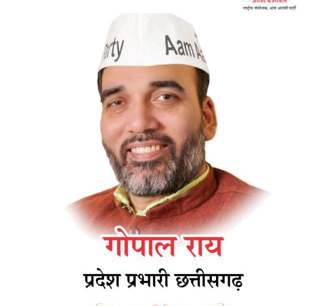 प्रदेश प्रभारी व दिल्ली सरकार के कैबिनेट मंत्री गोपाल रॉय जी कल सुबह 11 बजे पहुचेंगे रायपुर