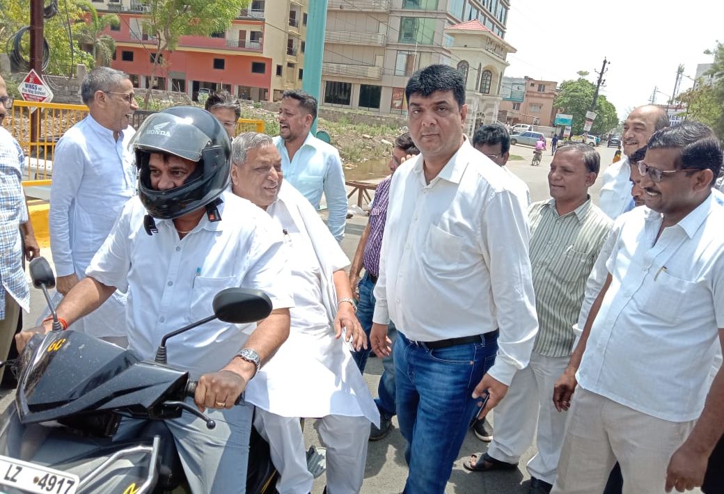 लोकार्पण से पूर्व ब्रिज का जायजा लेते सत्यनारायण शर्मा