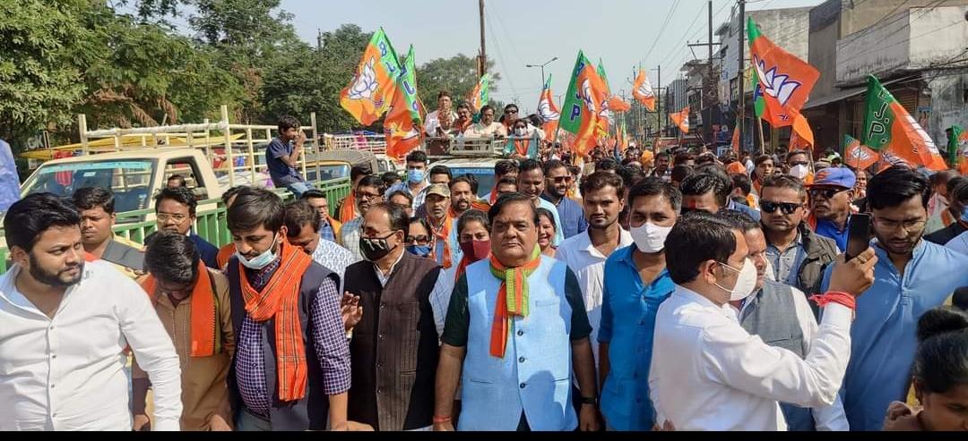रायपुर,3 दिसंबर 2021। भारतीय जनता पार्टी द्वारा आज नामांकन के आखिरी दिन जबरदस्त शक्ति प्रदर्शन किया गया, करीब डेढ़ किलोमीटर लंबी रैली में हजारों कार्यकर्ता हाथ में भाजपा का झंडा लेकर भारतीय जनता पार्टी जिंदाबाद का नारा लगाते हुए चल रहे थे, कार्यकर्ताओं का उत्साह देखते ही बन रहा था। रैली देखने के बाद क्षेत्र की जनता भी आपस में बातचीत कर रही थी की इस बार फिर से बिरगांव नगर निगम में महापौर भाजपा का बनेगा, साथ ही विशाल जनसमूह भी रैली के साथ चल रहा। ऐसा लग रहा था कि क्षेत्र की जनता कांग्रेस की भूपेश सरकार से जबरदस्त नाराज हैं।