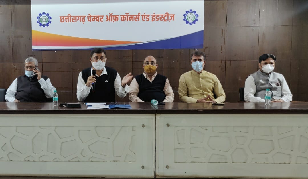 रायपुर,4 जनवरी 2021। छत्तीसगढ़ चेम्बर ऑफ कॉमर्स एंड इंडस्ट्रीज के प्रदेश अध्यक्ष अमर पारवानी, कैट सी.जी.चेप्टर के अध्यक्ष जीतेन्द्र कुमार दोशी, महामंत्री अजय भसीन, कोषाध्यक्ष उत्तम गोलछा, कार्यकारी अध्यक्ष-राजेन्द्र जग्गी ,विक्रम सिंहदेव, राम मंधान, मनमोहन अग्रवाल ने बताया कि छत्तीसगढ़ चेम्बर एवं कैट सी.जी.चेप्टर ने प्रदेश में बढ़ते कोरोना संक्रमण को दृष्टिगत रखते हुए कोरोना की रोकथाम हेतु जागरूकता के संबंध में आज व्यापारिक संघों की बैठक आयोजित की गई।
