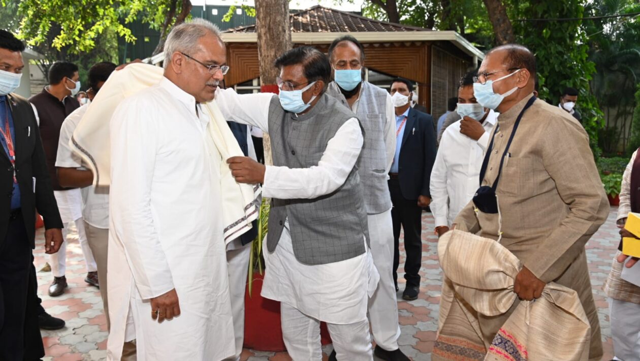 रायपुर-नगर निगम बिरगांव के नवनिर्वाचित महापौर नंद लाल देवांगन सभापति कृपाराम निषाद एवं पार्षदों ने आज मुख्यमंत्री निवास पहुंचकर मुख्यमंत्री भूपेश बघेल से मुलाकात की यह मुलाकात जिला सहकारी बैंक के अध्यक्ष पंकज शर्मा के नेतृत्व में हुई इस दौरान मुख्यमंत्री ने जीते हुए प्रत्याशियों को मिठाई खिलाकर बधाई दी वही जिला सहकारी बैंक के अध्यक्ष पंकज शर्मा ने मुख्यमंत्री को शाल भेंट कर शुभकामनाएं प्रेषित की। इस दौरान पूर्व विधायक मोतीलाल देवांगन, प्रभारी महामंत्री रवि घोष,राजेंद्र साहू, उधो वर्मा आदि मौजूद थे। मुख्यमंत्री निवास जाने के पहले नगर निगम बिरगांव के महापौर नंद लाल देवांगन सभापति कृपाराम निषाद के नेतृत्व में सभी नवनिर्वाचित पार्षद ग्रामीण विधायक सत्यनारायण शर्मा के बास्टल स्थित निवास में पहुंचे जहां उन्होंने ग्रामीण विधायक एवं जिला सहकारी बैंक के अध्यक्ष पंकज शर्मा को जीत की बधाई दी एवं साल भेटकर शुभकामनाएं प्रेषित की इस दौरान पंकज शर्मा ने नवनिर्वाचित सदस्यों को संबोधित करते हुए कहा कि यह जीत बिरगांव के प्रत्येक कार्यकर्ताओं की जीत है।