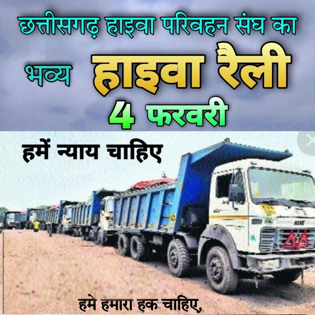 प्रशासन द्वारा हाइवा मालिको पर की जा रही दमनकारी कार्यवाही के विरोध में छ ग हाइवा परिवहन संघ द्वारा अपनी मांगों के समर्थन में प्रदेश व्यापी धरना प्रदर्शन किया जा रहा है