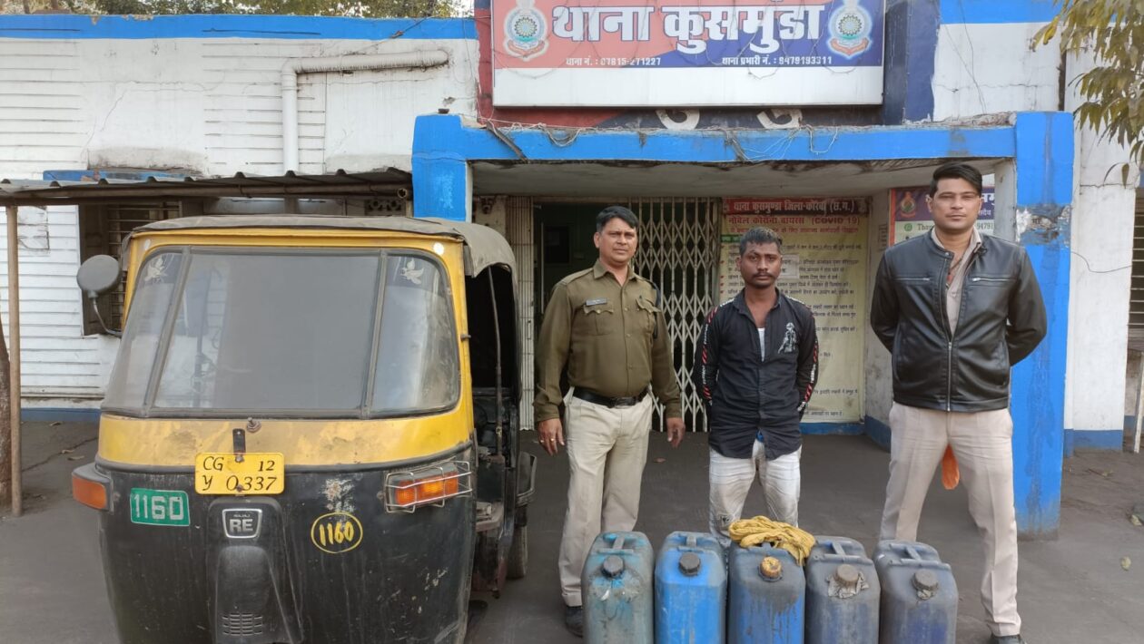मामले का संक्षिप्त विवरण इस प्रकार है कि पुलिस अधीक्षक कोरबा श्री भोजराम पटेल द्वारा क्षेत्र में डीजल, कोयला, कबाड़ चोरो के विरूद्ध सख्त कार्यवाही के संबंध में दिये गये निर्देशों के परिपालन में श्रीमान अतिरिक्त पुलिस अधीक्षक श्री अभिषेक वर्मा व श्रीमान नगर पुलिस अधीक्षक सुश्री लितेश सिंह के मार्गदर्शन पर चोरों पर शिकंजा कसने के विशेष अभियान के तहत चोरों के विरूद्ध कार्यवाही करने हेतु आदेशित किया गया है । दिनांक 20.02.2022 को पेट्रोलिंग के दौरान सूचना मिला की सलीम कुरैशी नाम का व्यक्ति ऑटो में भारी मात्रा में डीजल लेकर कुसमुण्डा से दीपका की ओर जा रहा है कि इस सूचना पर तत्काल हमराह स्टाफ के रवाना होकर कुचैना मोड़ के पास ऑटो क्रमांक CG 12 Y 0337 को रोककर चेक किया गया , चालक से नाम पूछने पर अपना नाम सलीम कुरैशी पिता सुन्ने कुरैशी उम्र 30वर्ष साकिन विकासनगर मदरसा के पास थाना कुसमुण्डा का रहने वाला बताया । आटो में 05 नग नीला रंग का 35 - 35 लीटर भरा डीजल कुल 175 लीटर मिला जिसके संबंध में सलीम कुरैशी को वैध कागजात पेश करने हेतु नोटिस देने पर कोई कागजात नही होना बताया। उक्त डीजल चोरी का होने के पूर्ण अंदेशा पर घटना में प्रयुक्त आटो सहित वजह सबूत में जप्त कर कब्जा पुलिस लिया गया। आरोपी सलीम कुरैशी विरूद्ध धारा 41 (1-4) जाफौ/ 379 भादवि के तहत कार्यवाही कर विधिवत गिरफ्तार न्यायिक रिमाण्ड पर भेजा गया है।