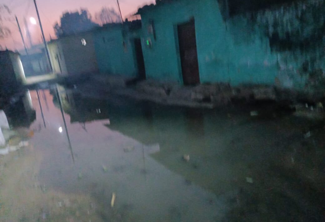 आम आदमी पार्टी गली पर पसरा है गंदा पानी निगम करें समाधान नहीं तो होगा उग्र आंदोलन