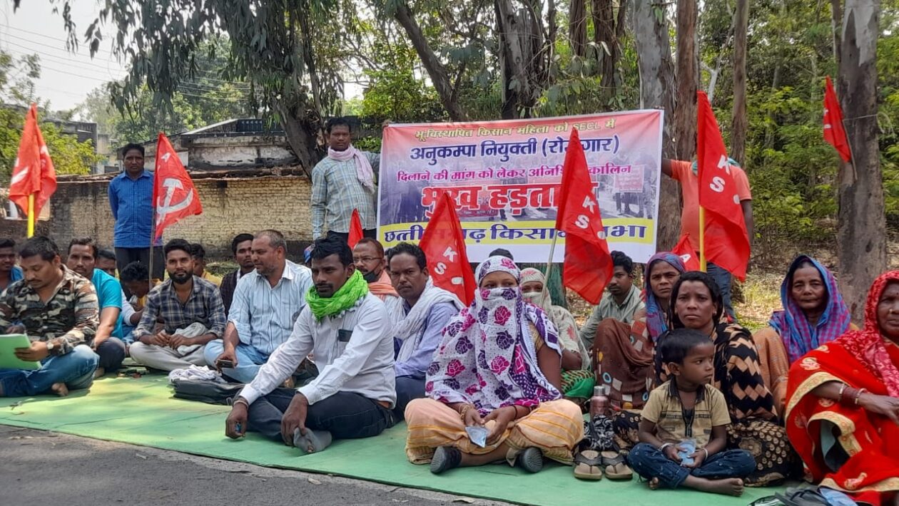 एसईसीएल में अनुकंपा नियुक्ति की मांग : किसान सभा के नेतृत्व में भूख हड़ताल पर बैठे पीड़ित परिवार