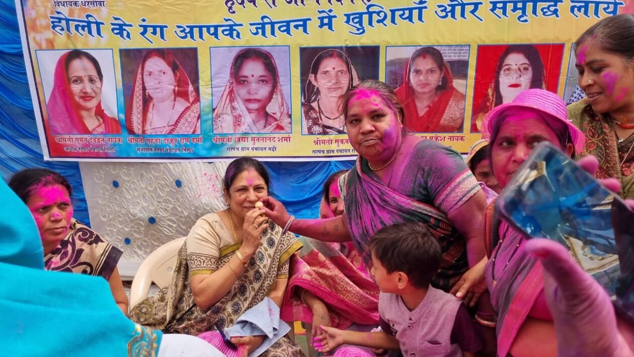 रायपुर । धरसीवा विधायक अनिता योगेन्द्र शर्मा द्वारा के आज बंजारी धाम खपरी मढ़ी में होली मिलन समारोह का आयोजन किया गया। आज इस होली के पारंपरिक गीतों पर महिलाओं ने जमकर आनंद उठाया। महिलाओं ने एक-दूसरे को गुलाल लगाकर होली खेली और होली गीतों पर नृत्य भी किया।