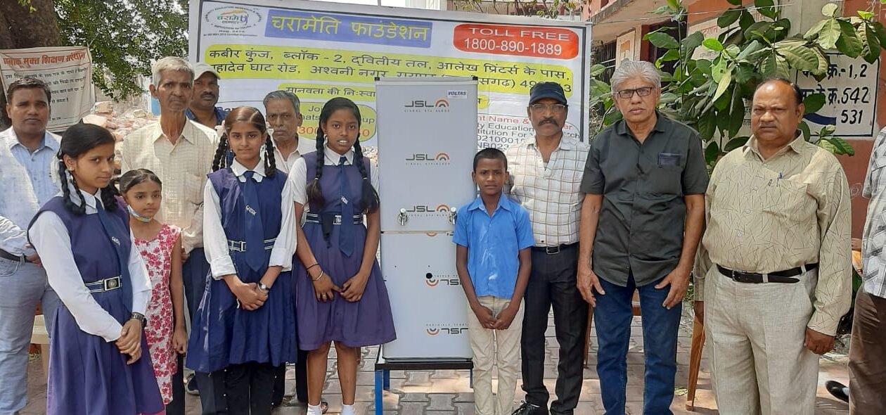 *संस्था के महासचिव राजेन्द्र ओझा ने बताया कि दोनों शालाओं की कुल छात्र संख्या करीब 300 से ज्यादा हैं। ठंडे पानी की सख्त जरूरत को देखते यहां फुल स्टील बॉडी का 40/80 क्षमता का वॉटर कूलर चरामेति फाउंडेशन द्वारा यहां लगवाया जा रहा है।*