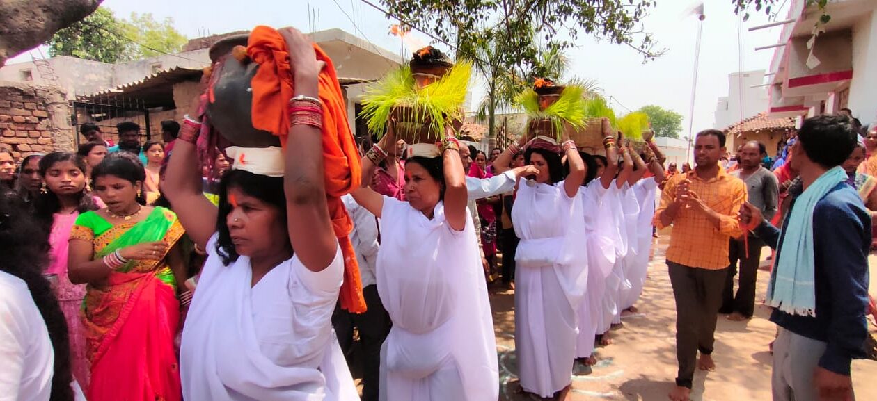 रायपुर,छत्तीसगढ़ में चैत्र नवरात्रि के महापर्व पर प्राचीन समय से जवारा बोकर अपने तथा लोगों की सुखसमृद्धि की कामना करने की मान्यता है जिसे आज भी बड़े धूमधाम से निभाया जाता है चैत्र नवरात्रि में 9 दिन जवारा बोकर गाँव व घर परिवार के सुख समृद्धि शांति के लिए जोत जवारा बोकर मातारानी की 9 दिन 9 माताओं की सेवा किया जाता हैं,उसके बाद विषर्जन किया जाता हैं, इसी कड़ी में आज माता स्वरूपी देवियों ने इस भीषण गर्मी में भी जोत जवारा को अपने सिर में रखकर नंगे पैर पैदल चलकर तालाब में विसर्जन की जिसमें NSUI के प्रदेश कार्यकारी सदस्य कोंडागाँव बस्तर प्रभारी सुर्यप्रताप बंजारे,ब्लॉक कांग्रेस कमेटी के भगत बंजारे,युवा कांग्रेस धरसीवां ब्लॉक के सचिव बीरेंद्र यादव ने समस्त दोंदेखुर्द ग्रामवाशियों के साथजोत जवारा विषर्जन में शामिल होकर मातारानी से प्रदेश वाशियों की खुशहाली की कामना किये,