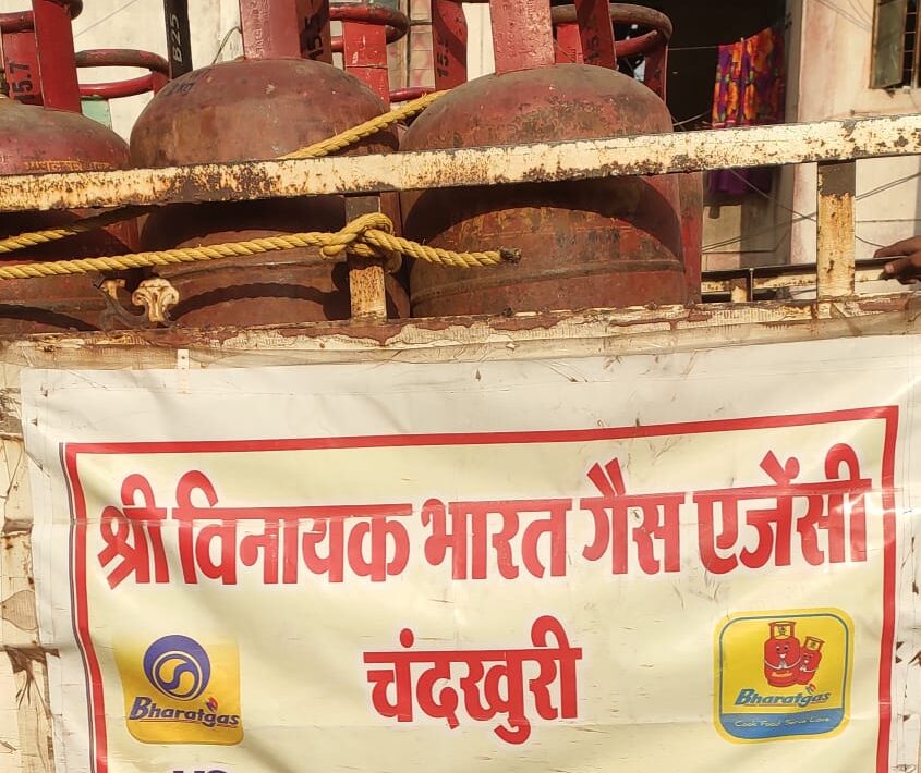 श्री विनायक भारत गैस एजेंसी चंदखुरी द्वारा इलेक्ट्रॉनिक कांटे की जगह स्प्रिंग बैलेंस से तोल कर दे रहे घर पहुंच सेवा
