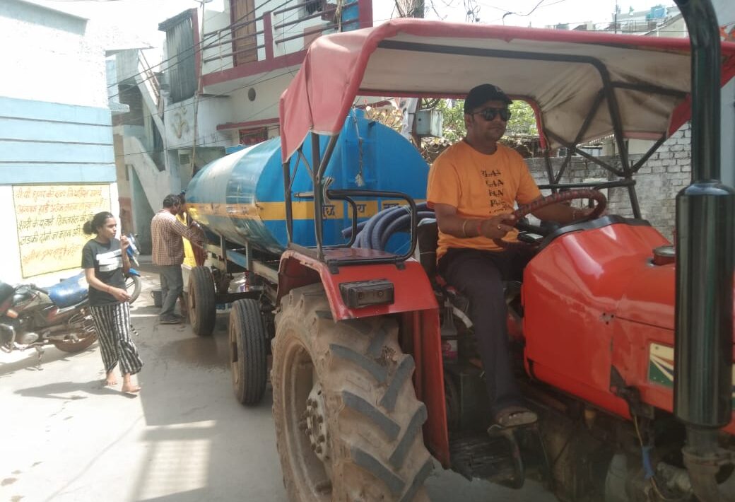 टैंकर चलाकर पानी देने पहुंचे पार्षद