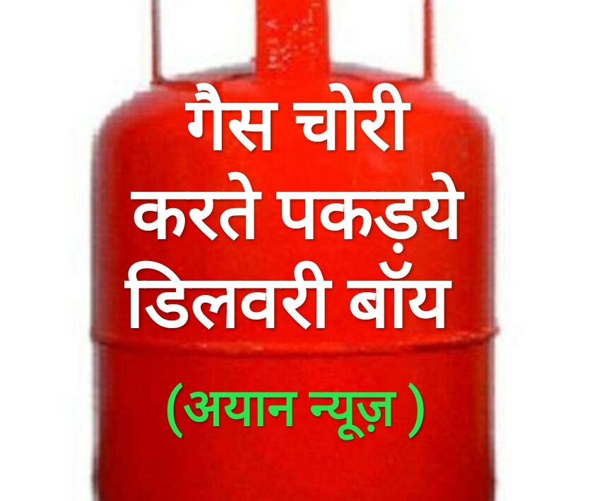 सिंलेंडर से गैस चोरी करते रेंगेहाथ पकड़ाया डिलीवरी बॉय लोगो को चकमा दे कर भागा