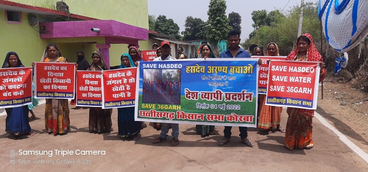 कोरबा। हसदेव के जंगल, पर्यावरण और वन्य प्राणियों के संरक्षण और आदिवासियों के संवैधानिक अधिकारों की रक्षा के लिए देशव्यापी प्रदर्शन के आह्वान पर कल छत्तीसगढ़ किसान सभा ने हसदेव अरण्य बचाओ संघर्ष समिति के साथ एकजुटता प्रकट करते हुए हसदेव के विनाश के खिलाफ कोरबा जिले के गांवों में किया विरोध प्रदर्शन आयोजित किया।
