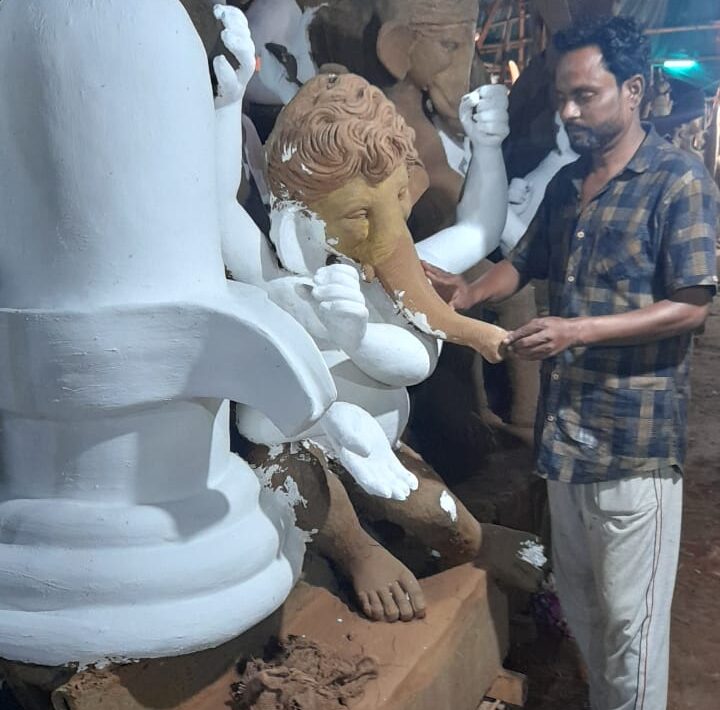 बिलासपुर लगभग गणेशोत्सव को अब कुछ ही दिन शेष रह गए है,जहा मूर्तिकार गणेश भगवान की मूर्ति को अंतिम स्वरूप देने मे लगे हुए है मूर्तिकार सुजीत सूत्रधर ने बताया की हमारे यहा बंगाल से कर्मचारी आते है जो छोटी मूर्तियो से लेकर बड़ी बड़ी मूर्तिया हमारे यहा बनाई जाती है। हमारे यहा से शहर से लोग लेने आते है कम समय बचा है अंतिम रूप देने मे लगे हुए है।
