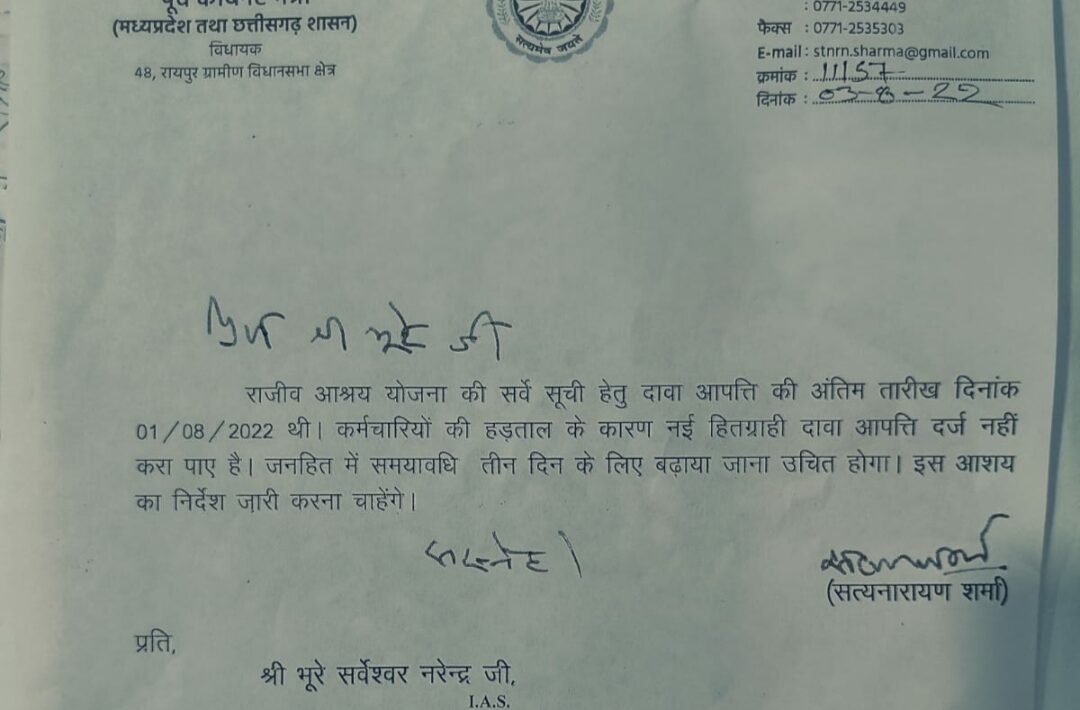विधायक सत्यनारायण शर्मा के प्रयास से राजीव आश्रय योजना के दावा आपत्ती की अंतिम तिथि बढ़ी