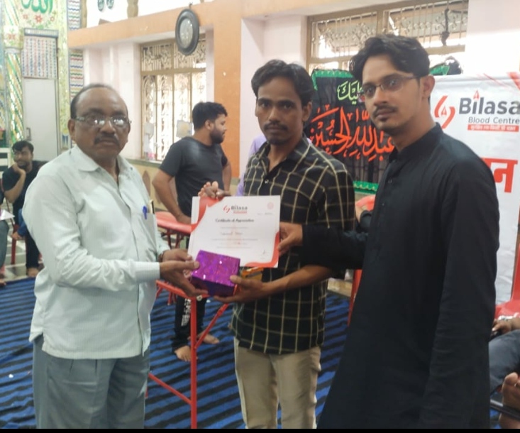 कल कर्बला के मैदान में इमाम हुसैन और उनके साथियों का बड़ी बेरहमी से खून बहाया गया था । यहां तक कि छः माह के बच्चे के गले को भी लहू लुहान कर दिया गया था। उन्हीं महान बलिदानियों ,जिनका सन्देश था, जियो और जीने दो, को श्रद्धांजलि देने के लिए इस शिविर का आयोजन किया गया। जो कि आशा से अधिक सफल रहा । इस शिविर की सफलता में बिलासा ब्लड सेंटर का भरपूर सहयोग मिला, जिसकी समाज के लोगों ने भूरि भूरि प्रशंसा की।