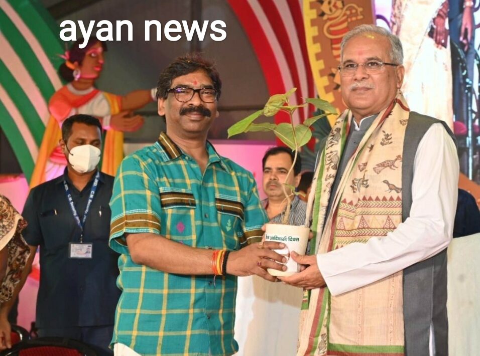 रायपुर, मुख्यमंत्री भूपेश बघेल झारखंड राज्य की राजधानी रांची में आयोजित जनजातीय महोत्सव-2022 के समापन कार्यक्रम में बतौर मुख्य अतिथि शामिल हुए। इस अवसर पर झारखंड के मुख्यमंत्री श्री हेमंत सोरेन ने छत्तीसगढ़ के मुख्यमंत्री श्री बघेल को सखुआ का पौधा तथा अंगवस्त्र प्रदान कर उनका स्वागत किया।