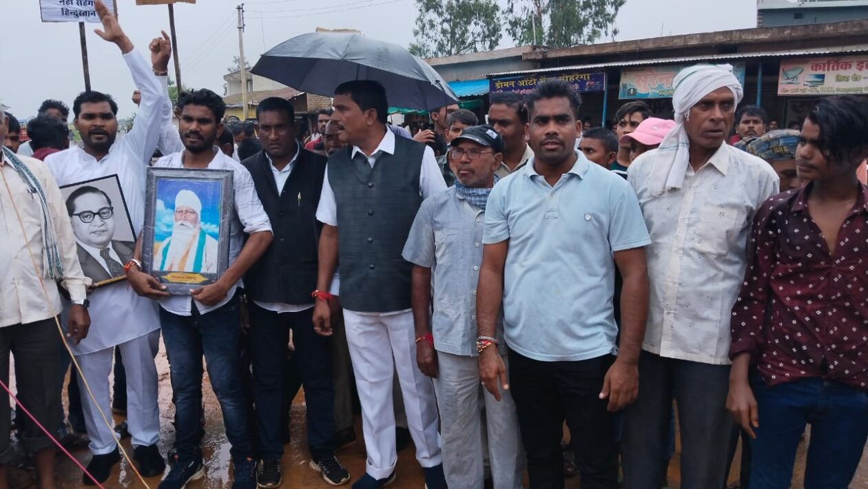रायपुर,खरोरा समीप ग्राम मुहरेंगा मे शासकीय हाईस्कूल नाम मंडलदास गिलहरे के नाम से किये जाने को लेकर विवाद थमने का नाम नही ले रहा है जहां नाम करण को लेकर मुहरेंगा गांव के लोग तीन दिनो तक चक्काजाम कर विरोध जताया था इसी मुद्दे को लेकर समाज के विशेष के लोग अपने समाज का अपमान बताकर रैली निकाल मुहरेंगा चौराहे पर ज्ञापन सौंपा और समाज मे आरजकता फैलाने वालो के खिलाफ कार्यवाई करने की मांग की तहसील के ग्राम पंचायत मोहरेंगा में शासकीय हाई स्कूल नामकरण विवाद अब एक नया मोड़ ले रहा है शनिवार को सतनामी समाज के लोगों ने अपने समाज के व्यक्ति स्वर्गीय मंडल दास गिलहरे के नाम पर स्कूल के नामकरण का विरोध करने वाले लोगों को भाजपा द्वारा प्रायोजित बताया सतनामी समाज ने इस मामले पर रैली निकालकर एक ज्ञापन प्रशासन को सौंपा और समाज के खिलाफ गांव वालों व स्कूली बच्चों को भड़काने की कोशिश का आरोप लगाते हुए भाजपा के पूर्व विधायक देवजी भाई पटेल के खिलाफ नारेबाजी की सतनामी समाज के लगभग 1000 लोगों ने बारिश के बीच ही रैली निकालकर एसडीएम को ज्ञापन सौंपा और इस मामले में जांच कर आरोपियों के खिलाफ कड़ी कार्यवाही करने की अपील की बता दें कि ग्राम पंचायत मोहरेंगा के हाई स्कूल का नामकरण स्वर्गीय मंडल दास गिलहरे के नाम पर किया गया है जिसके विरोध में बीते दिन मोहरेंगा के ग्रामवासियों ने लगातार तीन दिन तक चक्का जाम कर आक्रोश जताया था। कार्यक्रम मे शामील हुए सतनामी समाज के युवा समाज सेवी खुबी राम डहरिया ने कहा कि सतनामी समाज के प्रेरणा स्रोत मंडल दास गिलहरे का नाम से हाईस्कूल रखा जाना समाज के लिये गौरव की बात है इसके लिये धरसिवा विधायक अनिता शर्मा और मुख्यमंत्री भूपेश बधेल प्रति समाज कि ओर से आभार जताया औरआज भाजपा के कुछ नेताओ द्वारा गांव के लोगो को उकसाकर पिछले तीन दिनो तक चक्काजाम कराया जिसमे स्कूली बच्चे शामिल है यह मंडल दास गिलहरे का अपमान नही समाज का अपमान है जिसे समय आने पर समाज के लोग दिखायेंगे वही जनपद सदस्य मुकेश भारद्वाज मुहरेंगा वासीयो को अपील करते कहा कि भाजपा के बहकावे मे नही आने और आपसी सामंजस्य समाज के बीच बनाने की बात कहते वरिष्ठ समाजसेवी स्वर्गीय मंडलदास गिलहरे को सम्मान देने की बात कही मंडल दास गिलहरे के सुपुत्र पार्षद गिलहरे ने अपने पिता के 1977 से देहांत तक मुहरेंगा खौलीडबरी मे उनके द्वारा किये कार्य राहतकार्य डेम निर्माण , बीस सूत्रीय कार्य क्रम के तहत सिलींग जमीन का वितरन सहित सामाजिक कार्य को उपस्थित लोगो के बीच रखी रैली को संत नवरंगे बनवाली शान ,गजानंद बंजारे ,आनंद गिलहरे, धरसीवा जनपद पंचायत अध्यक्ष श्री भारती जी, मुन्ना नारंग सहित बडी संख्या मे समाज की महिला युवा वरिष्ठ जन शामील थे वही इस आदो