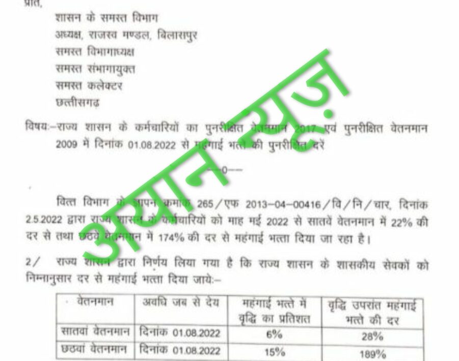 BIG BREAKING:रायपुर, अधिकारी-कर्मचारियों के लिए खुशखबरी,छत्तीसगढ़ में 6% बढ़ा महंगाई भत्ता, आदेश जारी देखिये आदेश की कापी