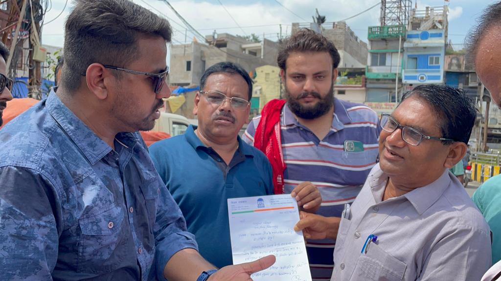 नागरिको की जान से खिलवाड़ कर रहा निगम प्रशासन , भाजपा युवा मोर्चा ने रोड जाम कर किया प्रदर्शन