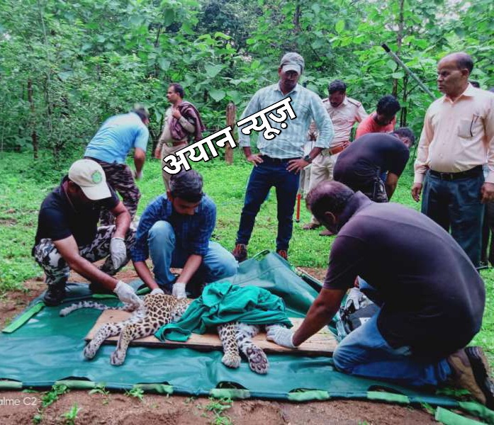 वन चौकी मोवाड़ स्टाफ द्वारा गश्ती करते हुये बीट के कक्ष क्रमांक – 499 में एक तेन्दुआ दो वृक्षों के बीच में फंसा हुआ दिखा था जिसकी सूचना कर्मचारियों द्वारा अधिकारियों को दी गयी थी।