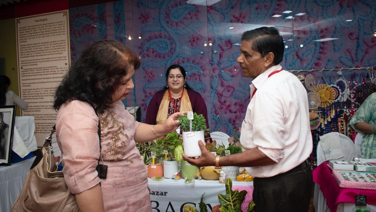 लखनऊ के हज़रतगंज मेट्रों पर सजी कलाकृति बाज़ार, हाथ से बने उत्पादों के साथ संगीत ने सजाई शाम