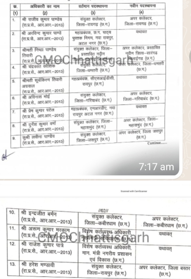 रायपुर,राज्य प्रशासनिक सेवा के अधिकारियों की पदोन्नति और नई पदस्थापना का शासन ने आदेश जारी किया,देखिए लिस्ट,