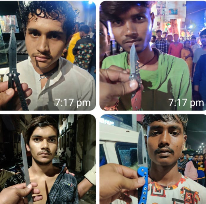 रायपुर। झांकी में चेकिंग के दौरान 20 से अधिक बदमाशों व संदिग्धों के पास अवैध रूप से रखें चाकू एवं अन्य हथियार बरामद किए गए जिन पर वैधानिक कार्यवाही की जा रही है. दरअसल गणेश विसर्जन झांकी के मद्देनजर अपराधों की रोकथाम तथा सुरक्षा व शांति व्यवस्था को ध्यान में रखते हुए वरिष्ठ पुलिस अधीक्षक प्रशांत अग्रवाल के निर्देशानुसार रायपुर पुलिस द्वारा झांकी व आसपास के क्षेत्रों में संदिग्ध व्यक्तियों व असामाजिक तत्वों की लगातार चेकिंग की जा रही थी.