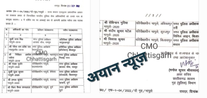 Uncategorized0 रायपुर,राज्य सरकार ने आज कई IPS अधिकारियों की नई पदस्थापना की आदेश जारी किया है।देखें आदेश, By Afroz KhwazaPosted onSeptember 21, 2022September 21, 2022Time to Read:-words रायपुर,राज्य सरकार ने आज कई IPS अधिकारियों की नई पदस्थापना की आदेश जारी किया है।देखें आदेश, रायपुर,राज्य शासन द्वारा भारतीय पुलिस सेवा संवर्ग के अधिकारियों के नवीन पदस्थापना आदेश जारी किया है जो इस प्रकार हैं।