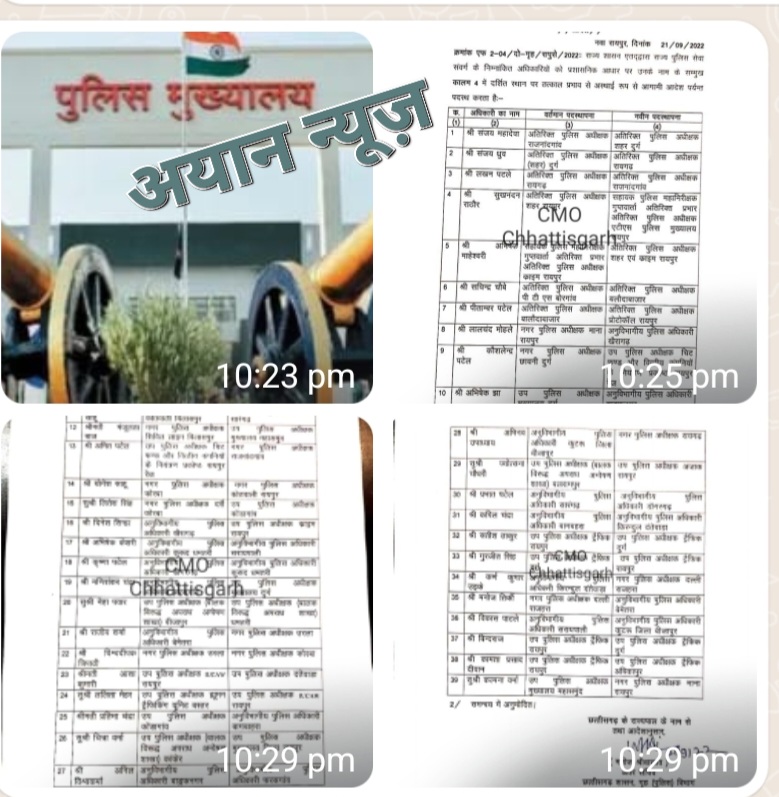 रायपुर,छत्तीसगढ़ में बड़े पैमाने पर अधिकारियों के तबादले,बदले गए कई जिलों के ASP-CSP-DSP, देखें पूरी लिस्ट,