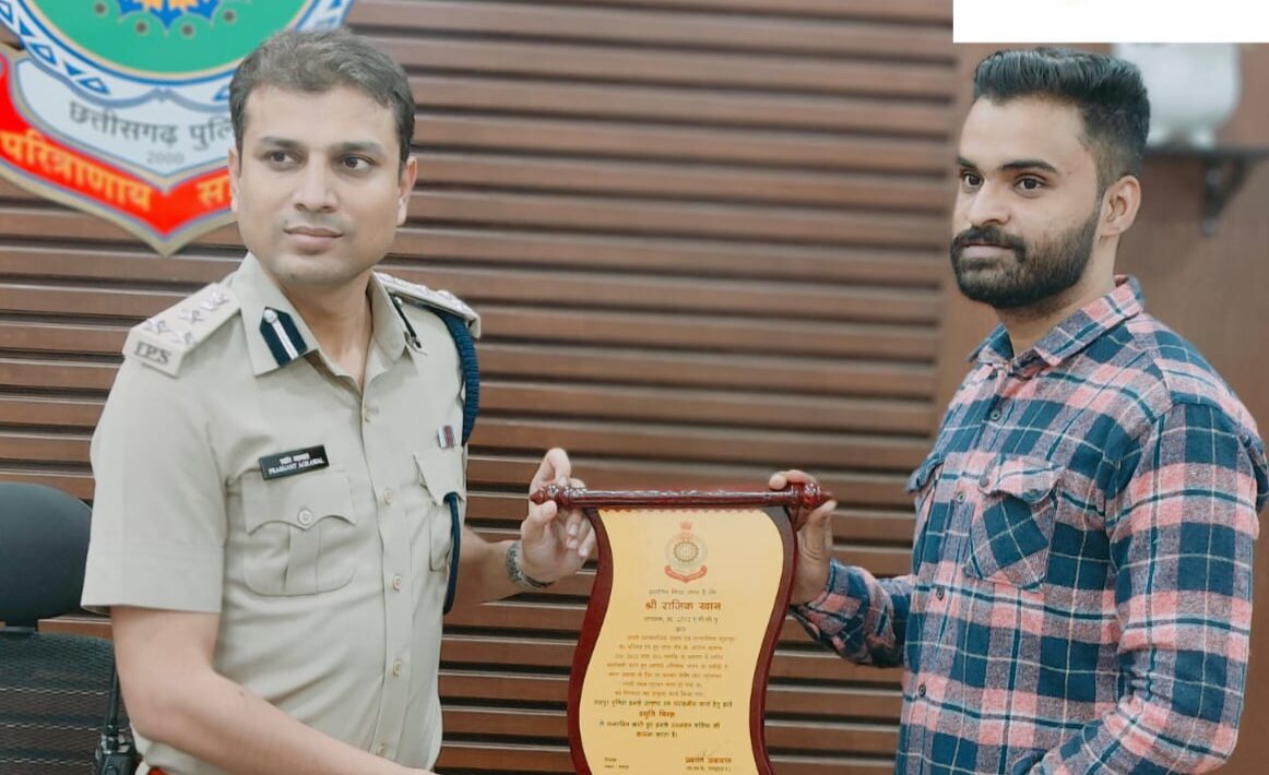 राजिक खान को उत्कृष्ट एवं सराहनीय कार्य हेतु इन्हें स्मृति चिन्ह प्रशांत अग्रवाल एस.एस.पी द्वारा देकर सम्मानित किया गया