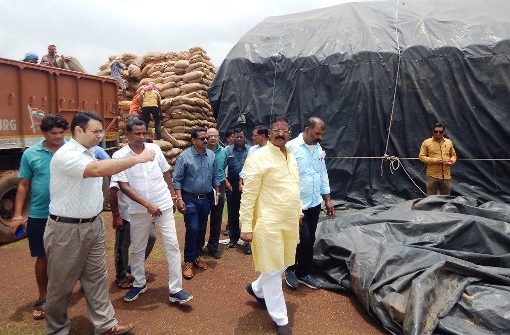 मंत्री अमरजीत भगत ने संग्रहण केन्द्रों में बारिश से धान के बचाव के लिए की गयी व्यवस्थाओं का जायजा लिया और संग्रहण केन्द्रों में शेष बचे धान का भी शीघ्र निराकरण सुनिश्चित करने के निर्देश विभागीय अधिकारियों को दिए। मंत्री अमरजीत भगत ने कहा कि बारिश से धान भीगने की शिकायत मिली थी जिसे संज्ञान में लेते हुए आज इन केन्द्रों का निरीक्षण किया गया। बारिश से धान भीगने की शिकायत सही नही मिली परंतु अधिकारियों को संग्रहण केन्द्रों में बचे धान का शीघ्र उठाव सुनिश्चित करने के निर्देश दिए गए है। उन्होंने कहा कि एफ सी आई के गोदामों में जगह नही होने के चावल जमा नही हो पा रहा है जिससे संग्रहण केन्द्रांे में धान बचा है। जिसका भी शीघ्र निराकरण के लिए अधिकारियों को निर्देशित किया गया है।