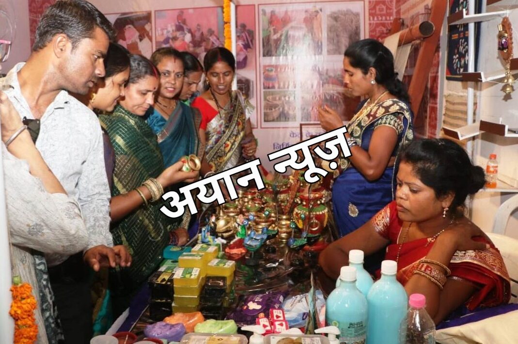 महिला समूहों द्वारा बनाए गए समानों को खरीदने लोगों का हुजूम