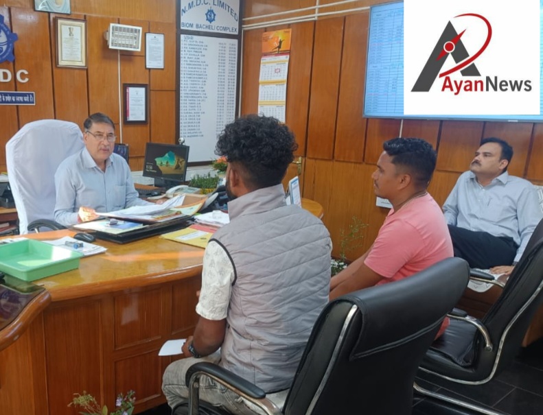 समस्याओं को लेकर एनएमडीसी प्रबंधक से मिले अरविन्द कुंजाम और अजय तेलाम