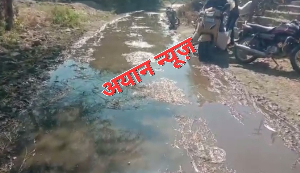 मुख्य सड़क पर जल निकासी की कोई व्यवस्था नहीं होने के कारण सड़क पर फैल रहा कीचड़।
