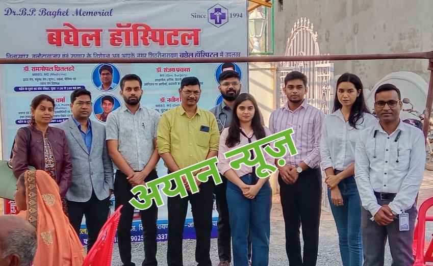 अयान न्यूज मनीष पाल की रिपोर्ट। बघेल हॉस्पिटल में निशुल्क स्वास्थ्य शिविर में शामिल हुए 300 से ज्यादा मरीज….मरीजों को मिला मुफ्त इलाज…. दवाइयो का हुआ निशुल्क वितरण…डॉक्टरों ने की सेवा…..