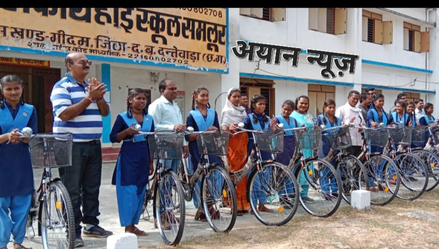 सरस्वती साइकिल योजना के तहत हाई स्कूल समलूर में किया साइकिल का वितरण