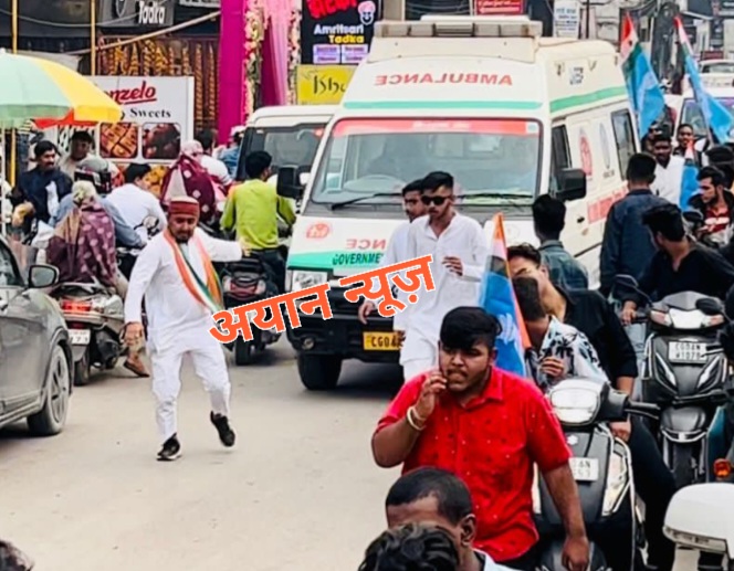 बाइक रैली के दौरान जाम में फसी एम्बुलेंस को छात्र नेता विशाल कुकरेजा ने दिखाया रास्ता।