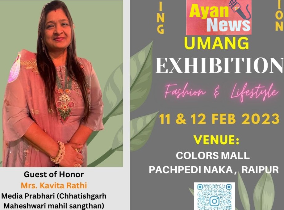 रायपुर। राजधानी रायपुर में दो दिवसीय वेडिंग एडिशन “उमंग” फैशन एंड लाइफस्टाइल प्रदर्शनी का आयोजन शनिवार को पचपेड़ी नाका स्थित कलर्स मॉल में सुबह 11 बजे से प्रारंभ होने जा रहा है,उक्त जानकारी देते हुए आयोजनकर्ता वर्षा व अनामिका जैन ने बताया की प्रदर्शनी का उदघाटन छत्तीसगढ़ प्रादेशिक माहेश्वरी महिला संगठन की प्रदेश मीडिया प्रभारी कविता राठी करेंगी।