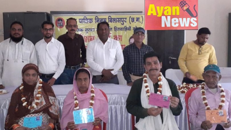 अयान न्यूज मनीष पाल की रिपोर्ट। सामाजिक सुरक्षा पेंशन के अंतर्गत पेंशन हितग्राहियों को पेंशन कार्ड का वितरण किया गया। नगर निगम बिलासपुर (छ. ग.) के द्वारा आज दिनांक 13 फरवरी 2023 को आर्थिक सामाजिक सुरक्षा पेंशन के अंतर्गत पेंशन हितग्राहियों को पेंशन कार्ड का वितरण मान. महापौर रामशरण यादव एवं सभापति शेख नजीरूद्दीन के द्वारा किया गया। जोन क्र. 06 के अंतर्गत वार्ड क्र. 38 से 70 के पात्र हितग्राहियों को निराश्रित पेंशन कार्ड का वितरण किया गया। गणेश नगर वार्ड क्रमांक 46 के पार्षद इब्राहिम खान अब्दुल के लगातार प्रयास एवं अनुशंसा पर वार्ड के जरूरत मंद हितग्राहियों को भी निराश्रित पेंशन का लाभ दिलाने पेंशन कार्ड बनाकर प्रदाय किया गया। उक्त कार्यक्रम में एमआईसी राजेश शुक्ला एमआईसी मनीष गढ़ेवाल एमआईसी अजय यादव पार्षद परदेसी राज पार्षद लक्ष्मी यादव पार्षद उमेश चंद्र कुमार मोती गंगवानी पार्षद प्रतिनिधि राज बंजारे जिला महासचिव मोहम्मद अयूब नगर निगम के अधिकारी उपस्थित रहे निराश्रित पेंशन हितग्राही वार्ड क्र.46 गणेश नगर
