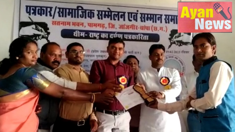 जी हा आपको बता दे कि पामगढ़ के सतनाम भवन में दैनिक राजधानी से जानता तक अकबर पोर्टल के सम्पादक शनि कुमार लहरे द्वारा आयोजित पत्रकार सम्मान समारोह का अयोजन करते हुए पत्रकार जगद को एक नया आयाम, राष्ट्र का दर्पण पत्रकारिता का संदेश देते हुए भव्य कायक्रम रखा गया था, इस दौरान अतिथि के रूप में शिवरीनारायण प्रेसक्लब अध्यक्ष- मुरली नायर सहित कई वरिष्ठ पत्रकार, दिग्गज नेता ओम प्रकाश मीरी (आप), एस.डी. रात्रे, (सी.एम.ओ.), कुंज किशोर सहित कई समाजसेवी मौजुद रहे। जहा इस दौरान पत्रकारिता छेत्र में बेहतर काम करने लिए शिवरीनारायण प्रेसक्लब उपाध्यक्ष- पप्पू यादव, भरत चौहान, अजय दास सहित सुरेश गुनी को प्रशस्ति पत्र के साथ मोमेंटो से सम्मानित किया गया।