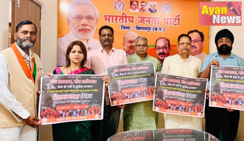 बिलासपुर भारतीय जनता पार्टी जिला कोरग्रुप की बैठक भाजपा कार्यालय बिलासपुर में हुई, जिसमें 15 मार्च को मोर आवास मोर अधिकार कार्यक्रम के तहत् रायपुर में प्रदेशव्यापी विधानसभा घेराव को लेकर बिलासपुर जिला की योजना बनाई गई, बिलासपुर जिले के प्रत्येक विधानसभा से भाजपा कार्यकर्ता हजारों की संख्या में हितग्राहियों के साथ विधानसभा घेराव में शामिल होंगे।छत्तीसगढ़ विधानसभा के पूर्व नेता प्रतिपक्ष बिल्हा विधायक धरमलाल कौशिक, वरिष्ठ भाजपा नेता पूर्व मंत्री अमर अग्रवाल, भाजपा प्रदेश उपाध्यक्ष भूपेन्द्र सवन्नी, बेलतरा विधायक रजनीश सिंह, महिला आयोग की पूर्व अध्यक्ष हर्षिता पाण्डेय, जिला महामंत्री घनश्याम कौशिक, मोहित जायसवाल ने 15 मार्च को होने वाले प्रदेश व्यापी विधानसभा घेराव के पोस्टर का विमोचन भाजपा कार्यालय बिलासपुर में किया। भारतीय जनता पार्टी ने प्रदेश की कांग्रेस सरकार के खिलाफ मोर आवास मोर अधिकार की मांगों को लेकर पूर्व में विधानसभा वार विभिन्न आंदोलन किए जिसमे कांग्रेस विधायकों के निवास घेराव प्रमुखता से किया गया। आगामी 15 मार्च को आयोजित विधानसभा घेराव कार्यक्रम के संदर्भ में आज जिला भाजपा कोरग्रुप की बैठक आयोजित की गई जहाँ पोस्टर का विमोचन भी किया गया विधानसभा घेराव को लेकर भाजपा आक्रामक मोड में है प्रदेश भर में घेराव के पोस्टर वॉल राइटिंग कर जन समर्थन के साथ इस कार्यक्रम को विकराल रूप पर करने जा रही है, जिससे प्रदेश कांग्रेस सरकार की नीव हिल जाये।