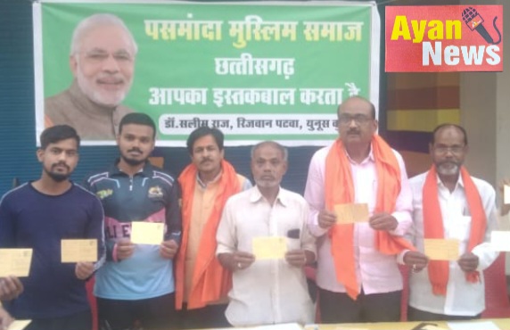 देश के यशश्वी प्रधानमंत्री माननीय नरेन्द्र मोदी जी नेतृत्व की भाजपा केंद्र सरकार द्वारा हज यात्रा पर जानेवाले मुस्लिम समाज के भाइयो एवं बहनो की दी रही रियायते जैसे हज यात्रा जानेवालों क़ो पचास हजार की रियायत, सुविधाओं मे विस्तार, हज यात्रा पर जानेवालों के कोटे मे बढ़ोतरी, 45 वर्ष से अधिक उम्र की महिलाओ क़ो अकेले हज यात्रा मे जाने की अनुमति दिए जाने की अनेकानेक सुविधाओं मे विस्तार किए जाने से ख़ुशी की लहर व्याप्त है जिससे उत्साहित पसमांदा समाज छत्तीसगढ़ द्वारा डॉ सलीम राज रिज़वान पटवा यूनुस कुरैशी के नेतृत्व मे रायपुर के मोमिनपारा हुसैनी चौक पर 19 मार्च 2023 क़ो शाम 4 बजे कार्यक्रम आयोजित कर देश के यशश्वी प्रधानमंत्री माननीय नरेन्द्र मोदी जी क़ो पोस्टकार्ड लिखकर इस सराहनीय पहल के लिए आभार एवं धन्यवाद ज्ञापित किया गयाउक्त कार्यक्रम मे प्रमुख रूप से रायपुर नगर निगम के पूर्व सभापति श्री प्रफफुल विश्वकर्मा, राजेश पाण्डेय,गणेश पदुमवार गुलाम मुस्तफ़ा, मजाहिर हुसैन, मुख़्तार हुसैन, शामिमूल हसन, मुबासीर हुसैन, मोह्हमद हुसैन, गौहर अली, जौहर अलीं हैदरी, कविश हैदरी, जुल्फाकर हुसैन, मुराद अब्बास, सलमान हैदर, मोहम्मद वकार, हसन अली, सिराजुल हुसैन, हसन अस्करी, अम्बर हुसैन, मोहम्मद नवाजिर सहित बड़ी संख्या मे पसमांदा समाज के बुद्धिजीवी एवं गणमान्य नागरिकगण उपस्थित थे