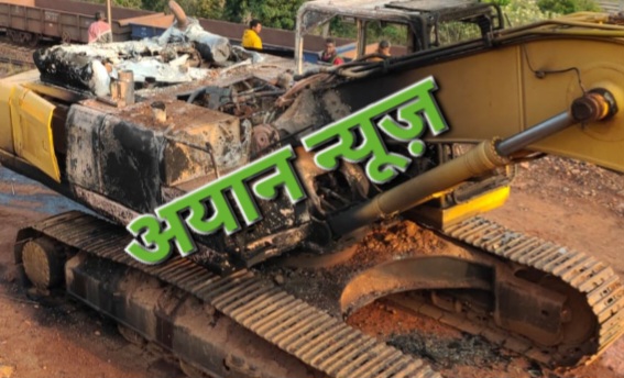 रेलवे दोहरीकरण के कार्य में लगे पोकलेन मशीन को नक्सलियों ने किया आग के हवाले।